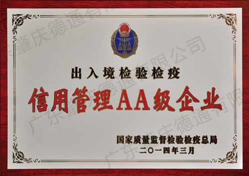 我公司榮獲“出入境檢驗(yàn)檢疫信用管理AA級(jí)企業(yè)”稱號(hào)2014-07-04