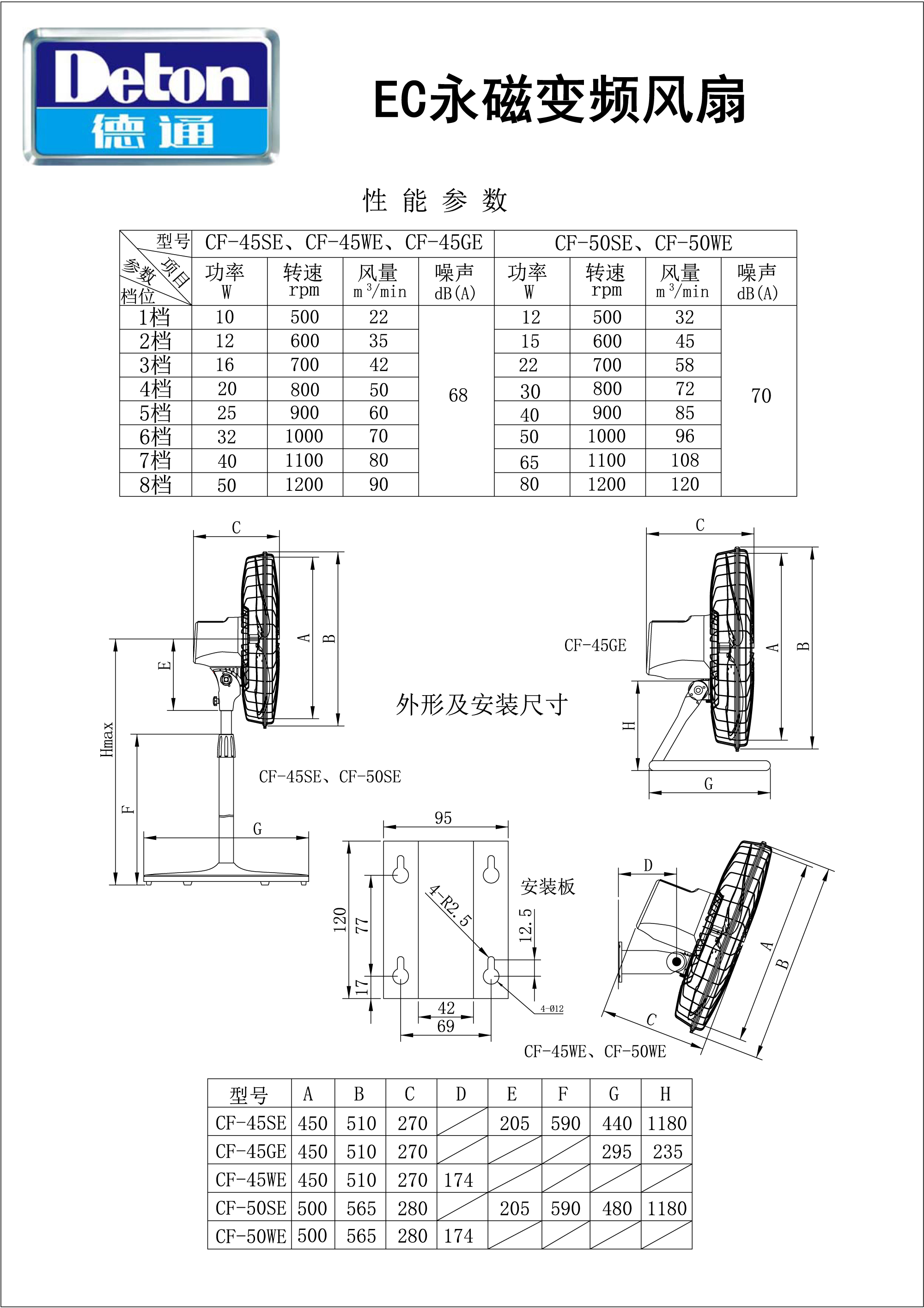 CF-45SE CF-50SE 德通(Deton)EC永磁變頻商用風扇